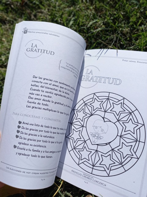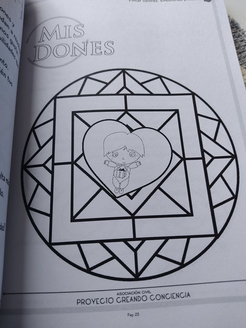 Pintar Valores, emociones pintadas es un libro con mandalas simples y reflexiones para crear espacios de calma en aulas, en casa o donde sientan.